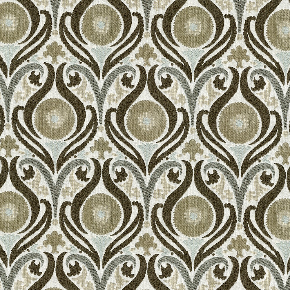 | ABBEYSHEA Blue Woven Jacquard Colors: Blue - Medallion Backing: 100% Acrylic Kiss Coat Colorfastness to Light AATCC 16 - Grade 4.5, hours Upholstery features a tribal suzani motif in our blue color combination. |