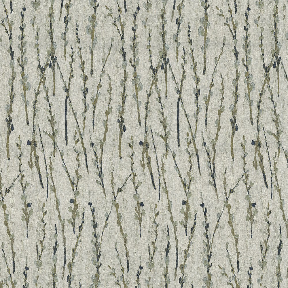 | ABBEYSHEA CreamWoven Jacquard Colors: Cream Blue Botanical Backing: 100% Acrylic Kiss Coat PFAS Free,California Proposition 65 compliant Upholstery a free flowing organic transitional design with overall branch detail shown in a blue cream color mix. |