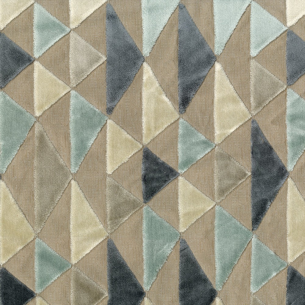 | ABBEYSHEA GrayVelvet Colors: Gray -Backing: 100% Acrylic Kiss Coat PFAS Free,California Proposition 65 compliant Colorfastness to Light AATCC 16 - Grade 3.5, 40 hr hours Upholstery Salvo 92 Glacier featured in our true blue is a cut velvet multi colored triangle geometric. |