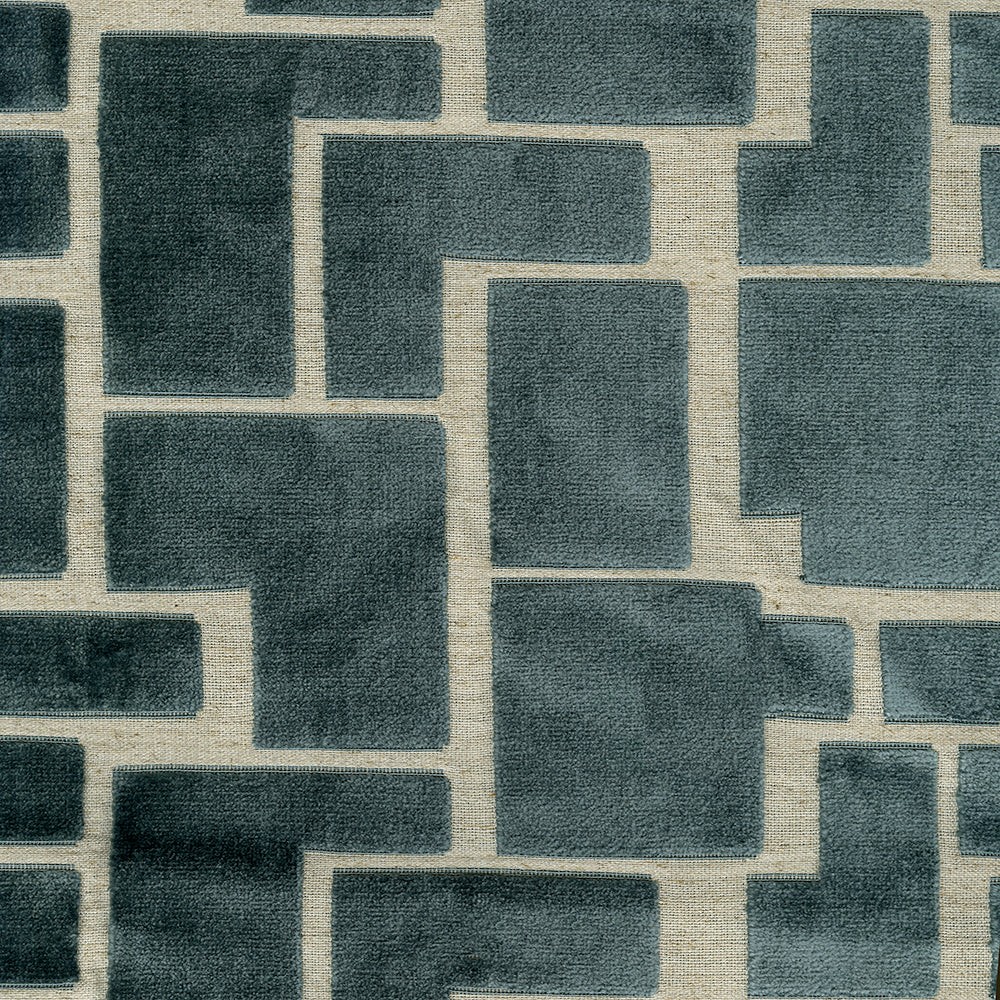 | ABBEYSHEA BlueVelvet Colors: Blue Cream Contemporary Backing: 100% Acrylic Kiss Coat Colorfastness to Light AATCC 16 - Grade 5, hours Upholstery a modern block chenille cut velvet. This contemporary design sits on a very organic woven base and is featured in our calming blue shade. |
