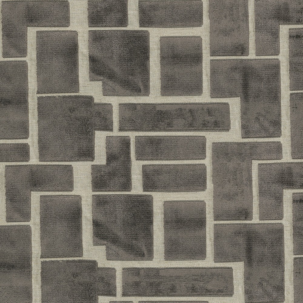| ABBEYSHEA GrayVelvet Colors: Gray Cream Contemporary Backing: 100% Acrylic Kiss Coat Colorfastness to Light AATCC 16 - Grade 5, hours Upholstery a modern block chenille cut velvet. This contemporary design sits on a very organic woven base and is featured in our deep gray shade. |
