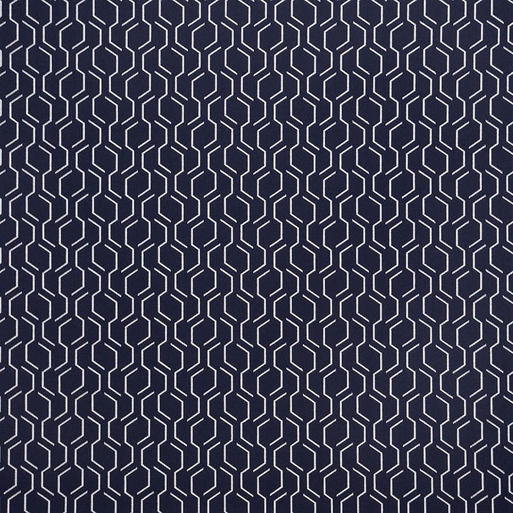 Adaptation 69010-0004 Indigo is a Sunbrella furniture fabric for outdoor and indoor applications. This playful geometric pattern brings a modern vibe to designs in a rich indigo blue and cream color.