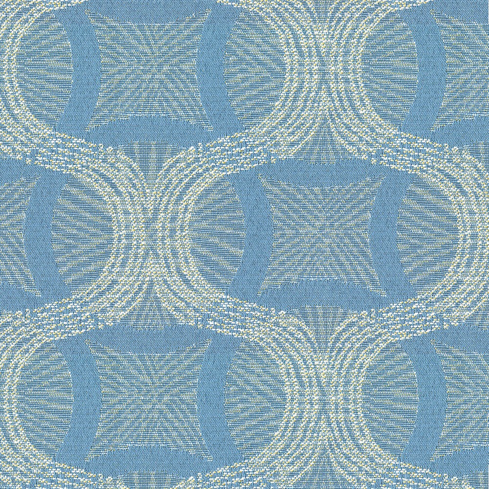 Ingrain 31 Sky is a Crypton fabric for contract upholstery applications. This playful pattern has a lot of movement through a mix of soft blue colors, wavy lines and circles.
