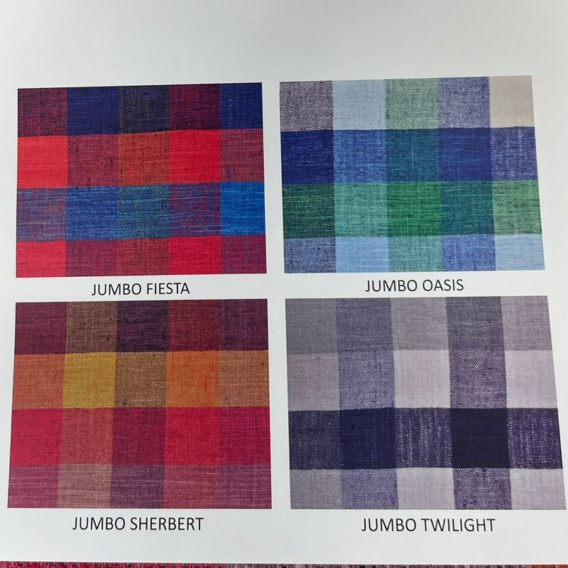 Woven large check. Squares are about 2.75 x 3 inch per color. Soil and stain and FR treatments available. |
