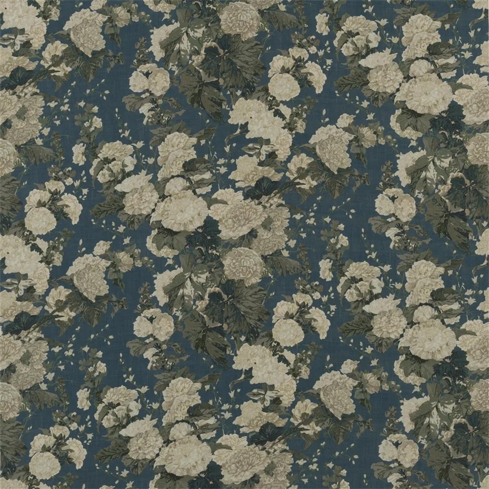 | Half Drop Pattern Match 7.4 0z/sq yd weight Lovely hollyhock flowers printed on a linen ground. Suitable for light upholstery, cushions, curtains and more. |