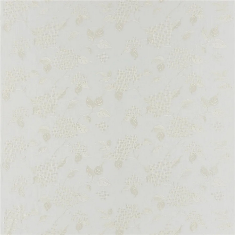 Lovely tonal hydrangea embroidery on a linen ground. Straight Match. Perfect for draperies, curtains, cushions, roman shades and more. Create an elegant look with this classic floral embroidery from Ralph Lauren.