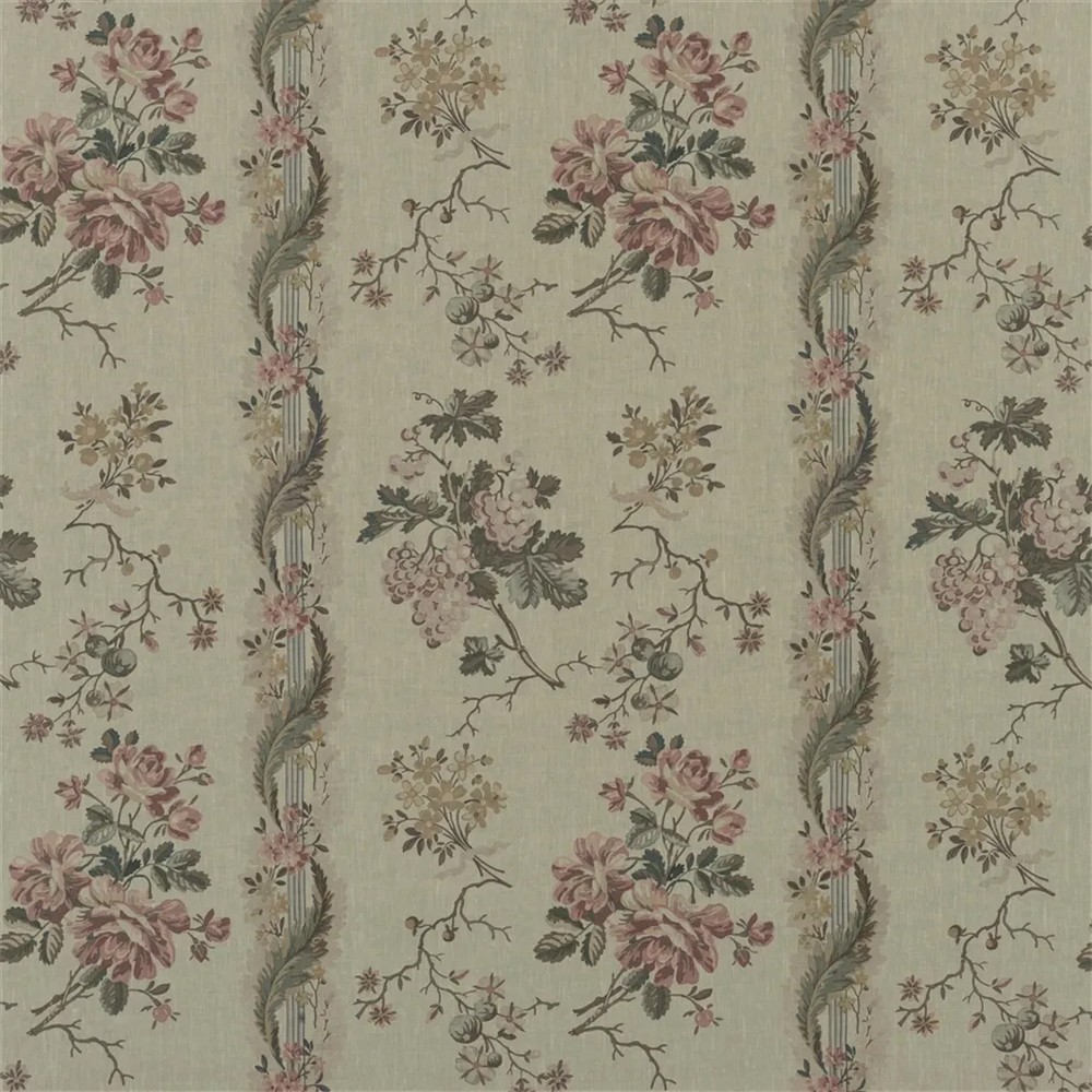 Prevously a part of the Bedford collection, this favorite floral is based on an antique document. With an updated scale, this gorgeous and beloved scrolling floral is printed on a solid linen ground. |