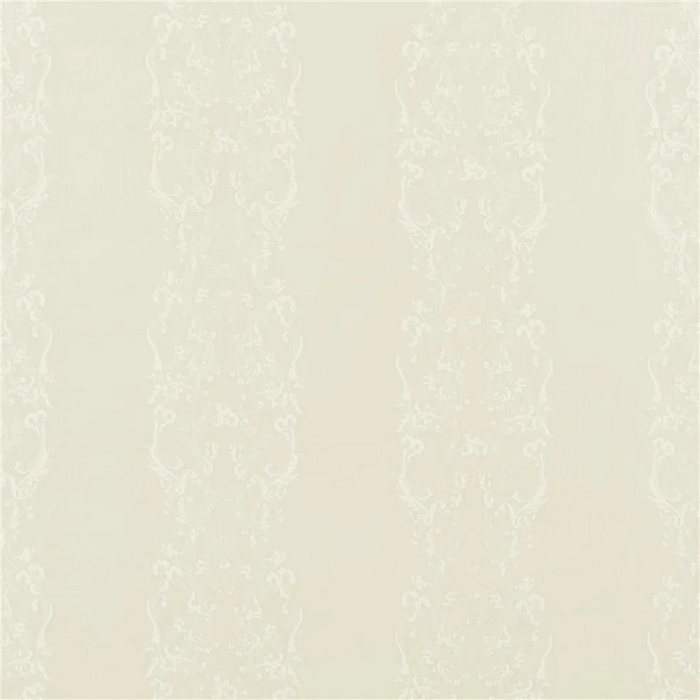 Straight Match. Traditionally woven in the UK on lace looms, this delicate sheer features a scrolled floral stripe that creates a soft shadow effect, offering an elegant embellishment. |