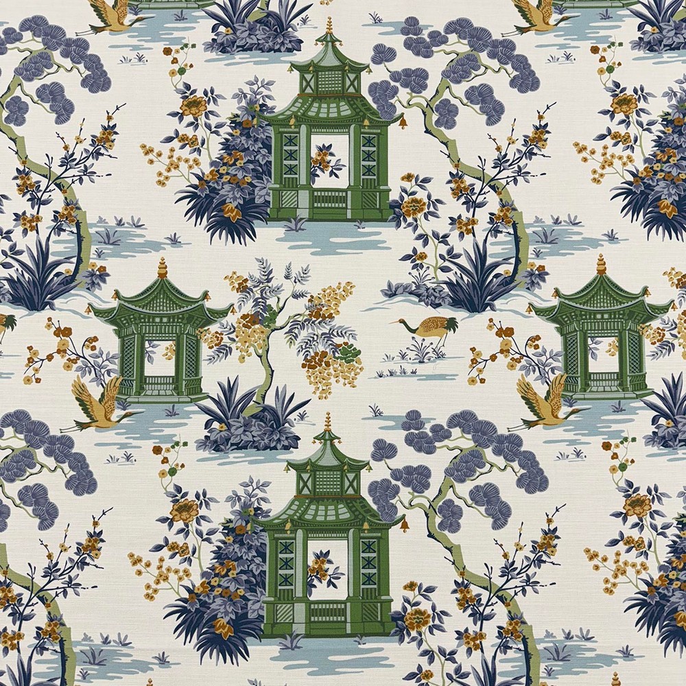 | Magfabrics Blue Prints Asian,toile Fabric Pattern is Uproll |