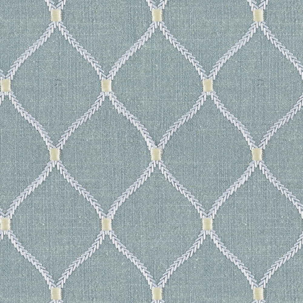 | Magfabrics Blue Crewels/embroideries Diamond/ogee,embroidery,lattice/fretwork Fabric These beautiful colors are created by piece dyeing. Slight color variations from dyelot to dyelot are inherent in this process. Pattern is Uproll |