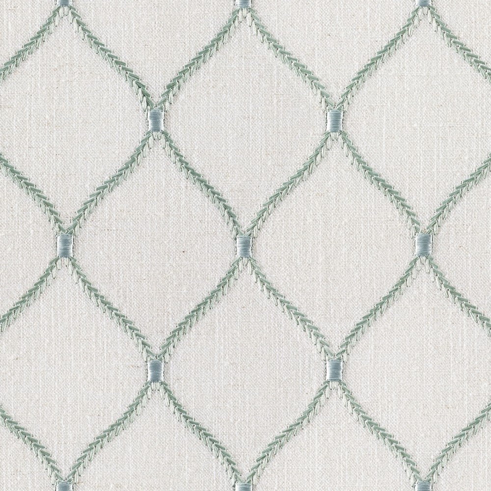 | Magfabrics Aqua/teal Crewels/embroideries Diamond/ogee,embroidery,lattice/fretwork Fabric These beautiful colors are created by piece dyeing. Slight color variations from dyelot to dyelot are inherent in this process. Pattern is Uproll |