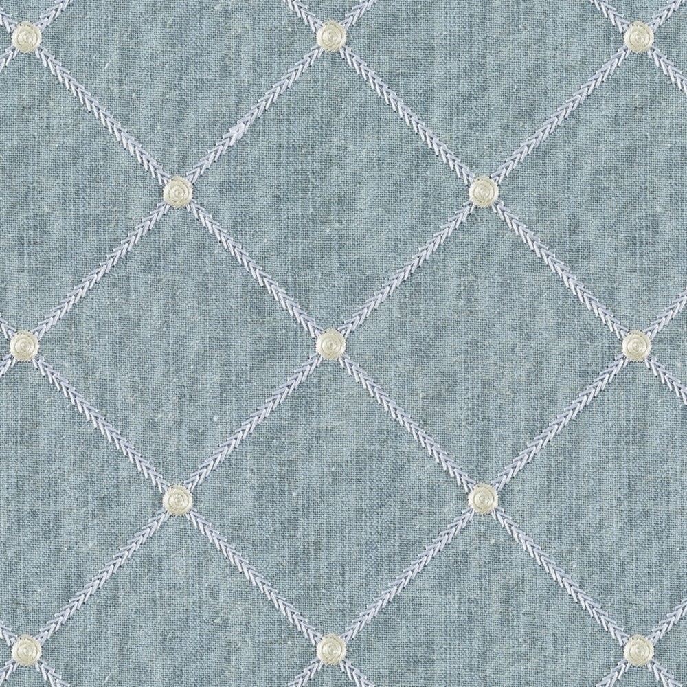 | Magfabrics Blue Crewels/embroideries Diamond/ogee,embroidery,lattice/fretwork Fabric These beautiful colors are created by piece dyeing. Slight color variations from dyelot to dyelot are inherent in this process. Pattern is Uproll |