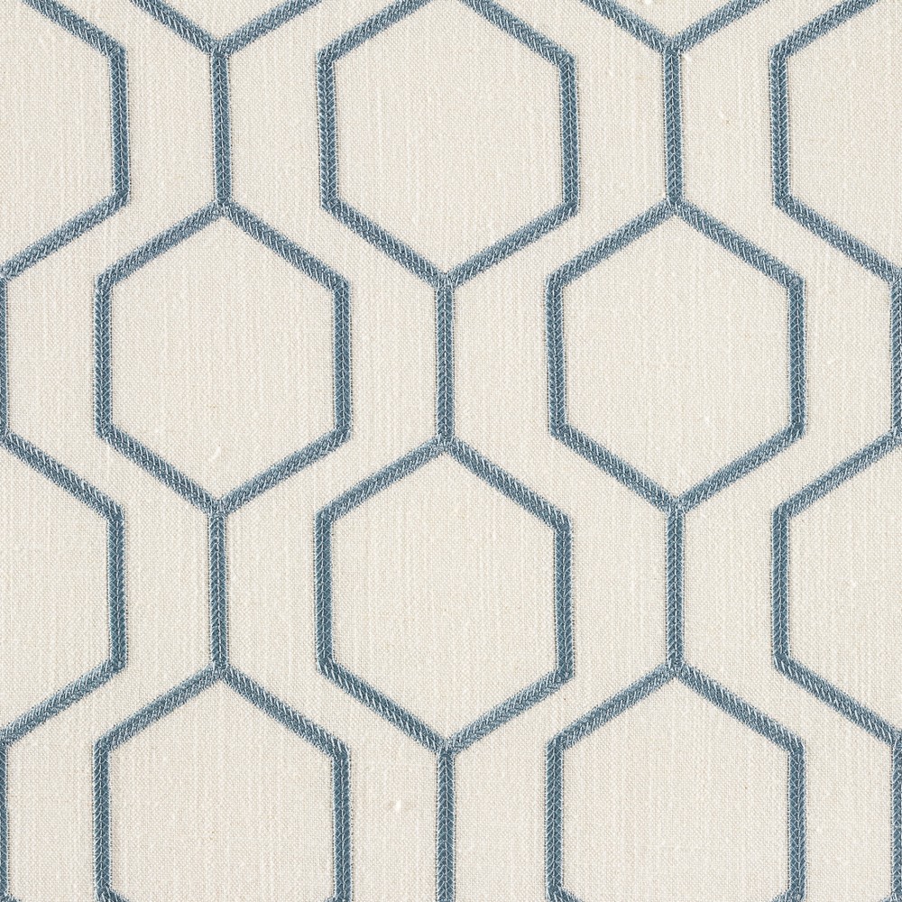 | Magfabrics Blue Crewels/embroideries Embroidery,geometric,lattice/fretwork Fabric These beautiful colors are created by piece dyeing. Slight color variations from dyelot to dyelot are inherent in this process. Pattern is Uproll |