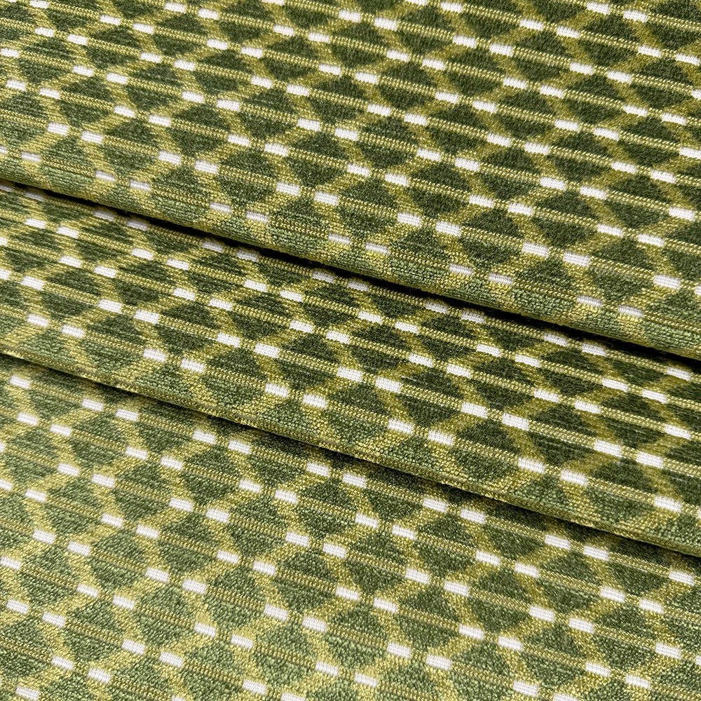 | Magfabrics Green Velvet Diamond/ogee,small Scale Woven Fabric Pattern is Uproll |