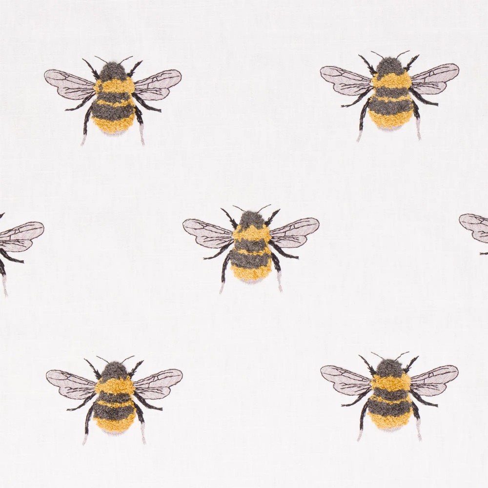 | Bumble bee on a plain ground cloth features a terry like stitch for a fuzzy embroidered bee. Wings are satin stitch. Pattern runs up the roll. |