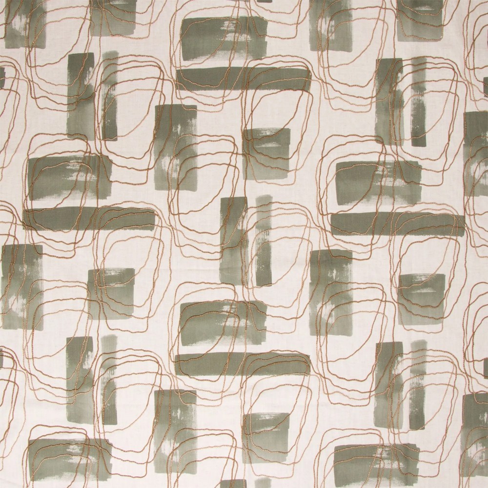 | Jute and cotton embroidery create a continuous meandering line on this brushstoke modern geometric fabric. |