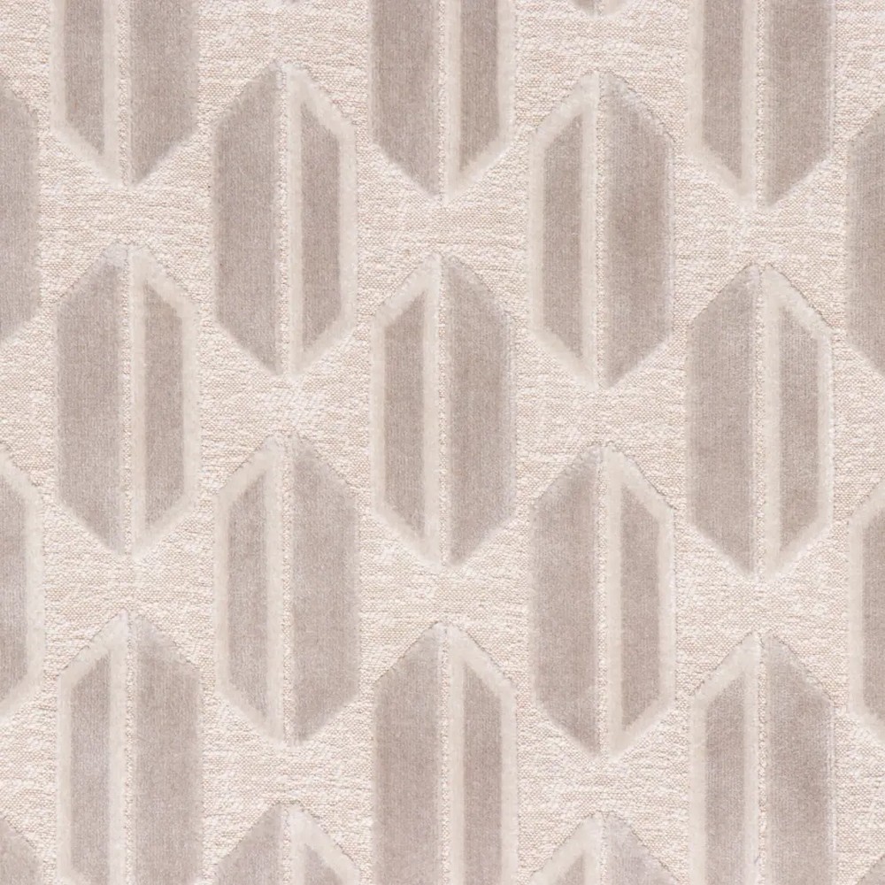 Retro geometric cut velvet fabric. Pattern runs up the roll. Latex finish. |