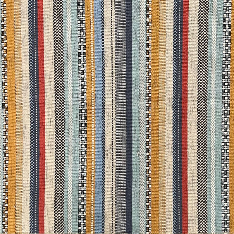 | A timeless southwestern or ranch-inspired stripe design, featuring a blend of checks and herringbone patterns within the stripes, crafted on a durable, heavy woven fabric. |