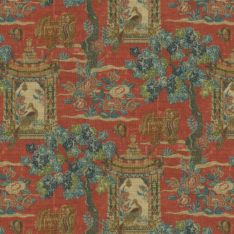 | PK Lifestyles History Retold Vii Printed floral garden features birds and Chinese style animals. Oriental fabric. |