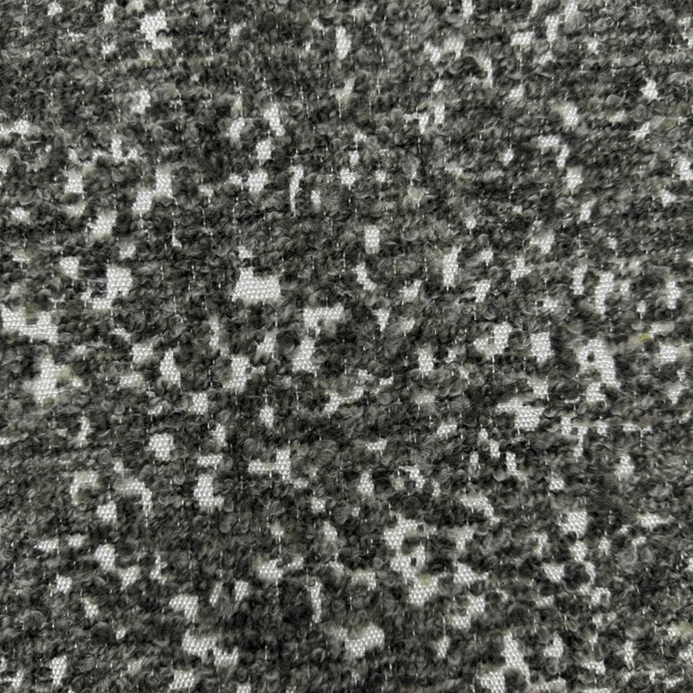 | Shades of light and dark gray performance upholstery fabric. Soil and stain resistant boucle style upholstery texture. |