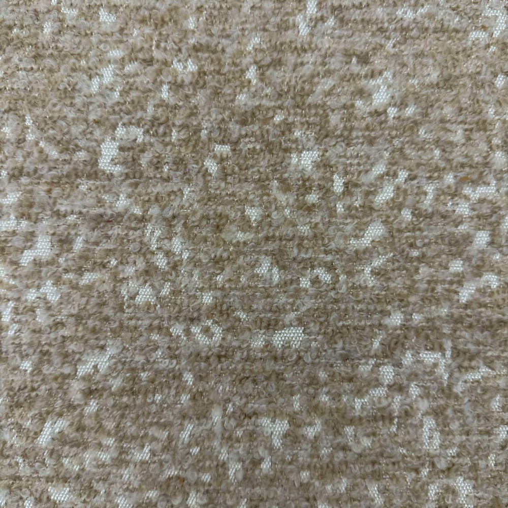 | Light brown beige performance upholstery fabric. Soil and stain resistant boucle style upholstery texture. |