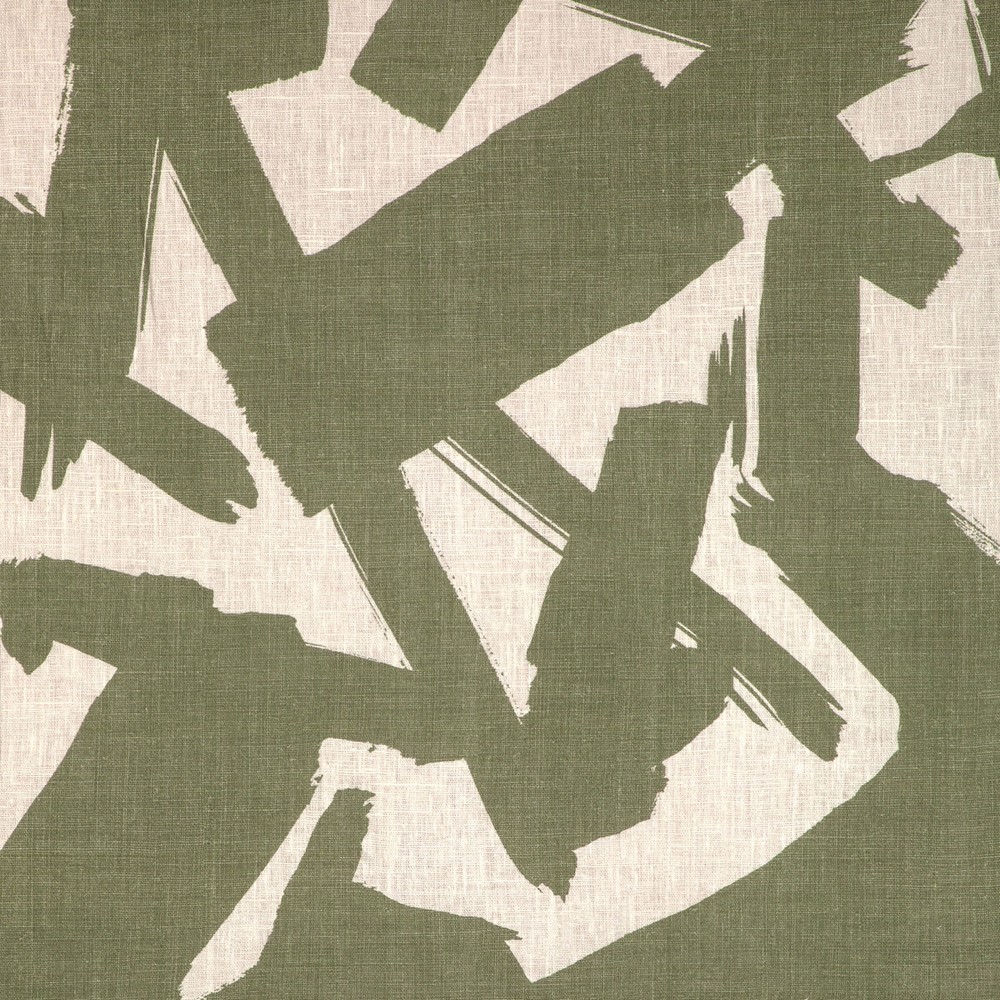 | LINEN PRINT ABSTRACT GEOMETRIC ART DISTRICT KRAVET COUTURE SOFTENED ; Colors: Ivory Sage Green |