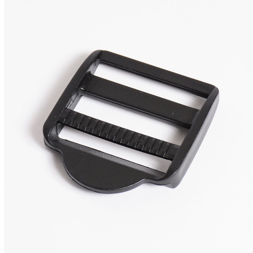 | 100 Per Package Black Straplock slides for fixing and adjusting webbing. One end is fixed by sewing, the other adjustable through the locking bar, just angle for release and pull to tighten. Bags Black |