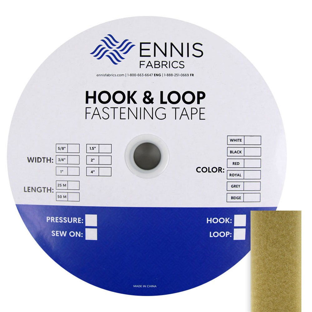 | 1 RL Beige Nylon fastener that is a two part system. One part consists of rows of hooks and the part of a mass of loops. When pressed together, they form a highly secure closure, yet can be easily re-opened with a simple peeling action., Completely washable an Upholstery Loop |