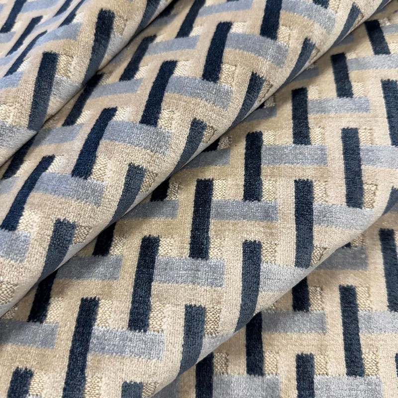 | Magfabrics Blue,light Blue Velvet Basketweave,check/plaid,geometric Fabric Pattern is Uproll |