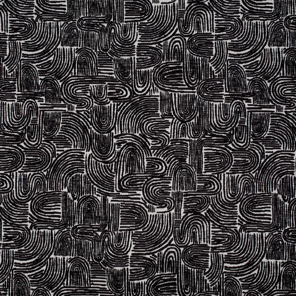 | MitchellPerformance , MitchellDesignStudio Black , White/Ivory Abstract , Small Scale Print , Woven Upholstery , 30k-50k Double Rubs Alta , Soil & Stain Resistant , PFAS-Free |