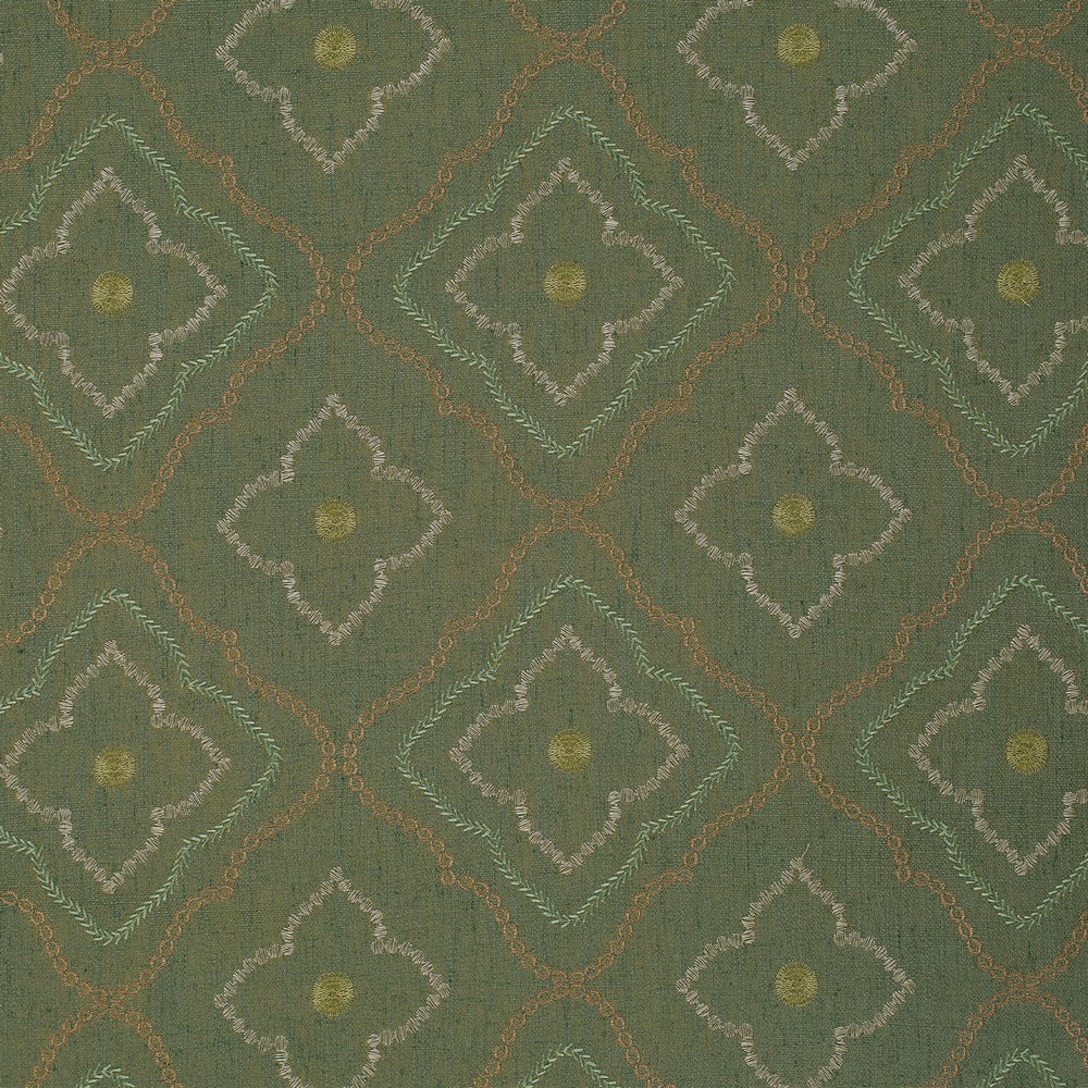 | MitchellDesignStudio Green Medallion , Trellis Embroidery , Linen Drapery |
