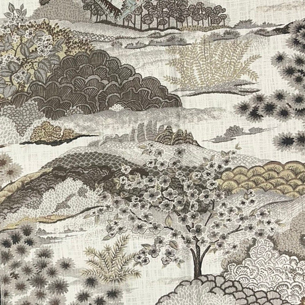 Asian inspired landscape featuring cherry blossoms on a heavy woven ground cloth.