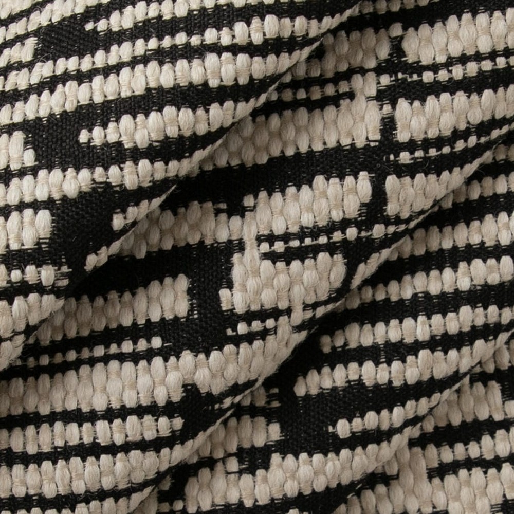 | Performance Colors Raven Black Suitable for Upholstery,Contract,Home Abstract & Geometric,Global Woven Patterns Eco Friendly,Fade Resistant,Greenguard Gold,Made In America,Performance Grade,Pet Friendly,Stain Resistant PFAS Free, Low Carbon Footprint, Greenguard Gold Certified Ecofiber: Naturally Inherent Stain Resistance With No Added Treatment, Fade Resistant Shown Railroaded |