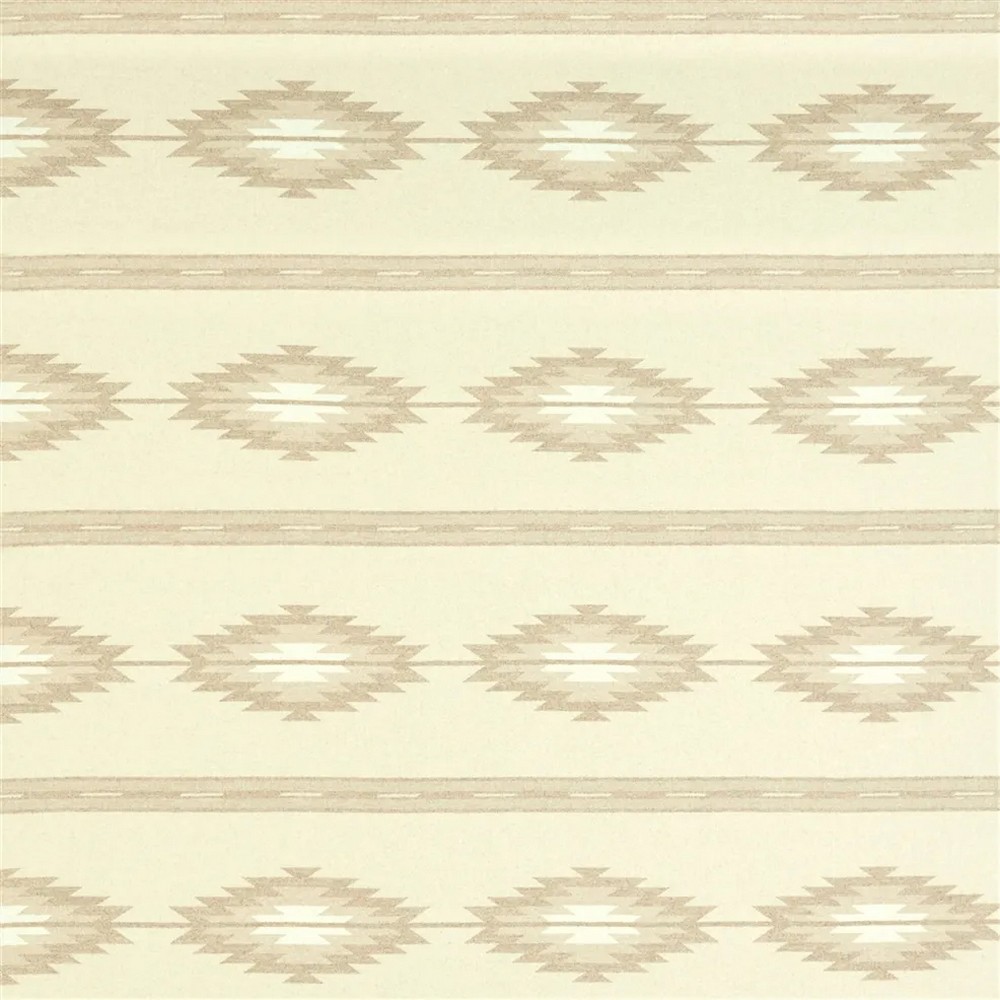 | Ralph Lauren Canyon Road Peppy Stripe – Indigo Wool Blend Named for a cherished horse on the Glasses family ranch, this bold stripe draws from Tyler Glasses’ early saddle blanket weaving. Stepped diamond motifs—known as butterfly diamonds—form a striking horizontal rhythm in deep indigo tones, echoing movement and memory. Woven with care and cultural reverence, it’s ideal for upholstery, drapery, and cushions that carry both beauty and story. |