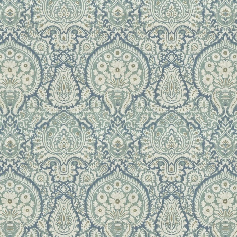 | RM Coco Painters Palette Cerulean Blue to Viridian Green Damask,Ethnic,Transitional Print |