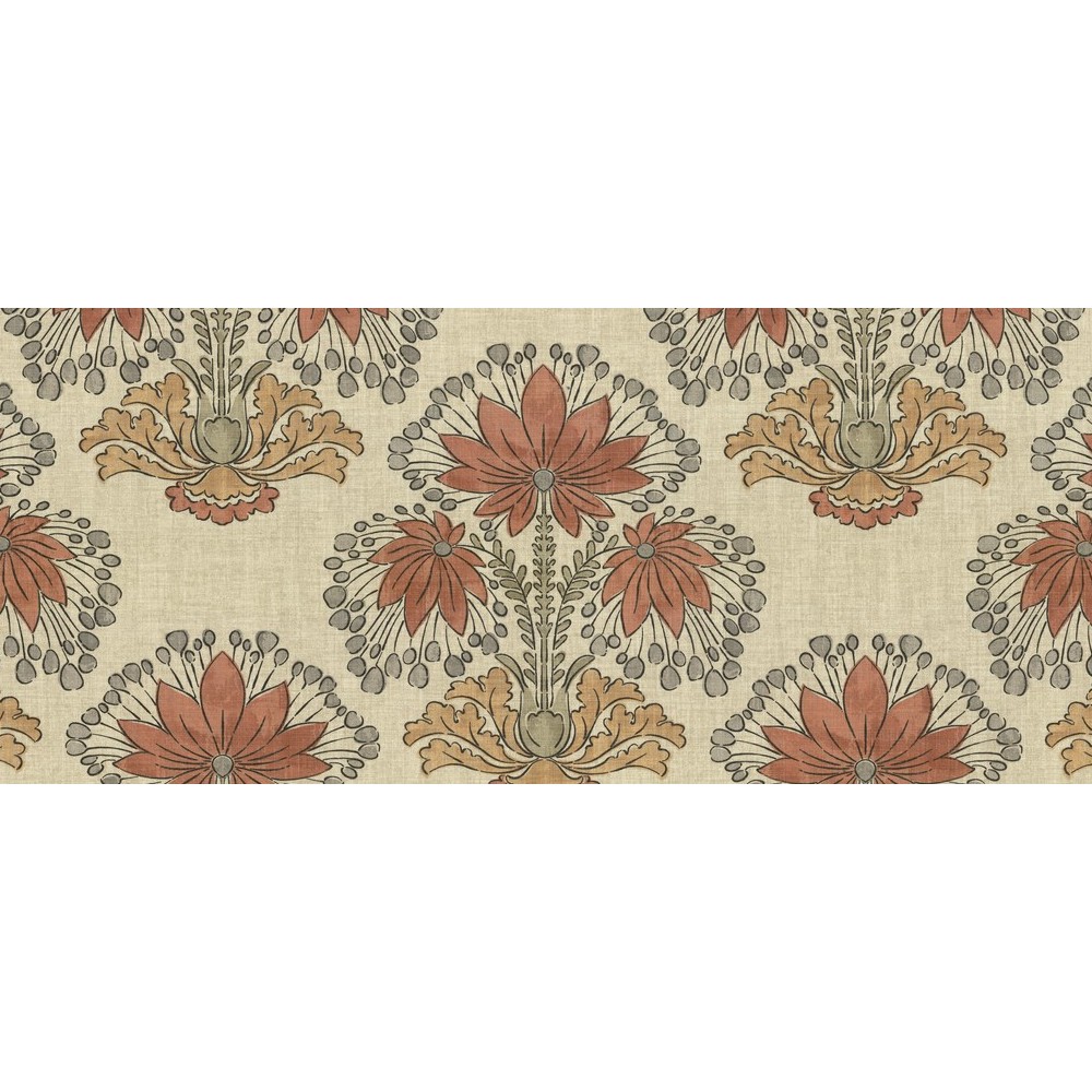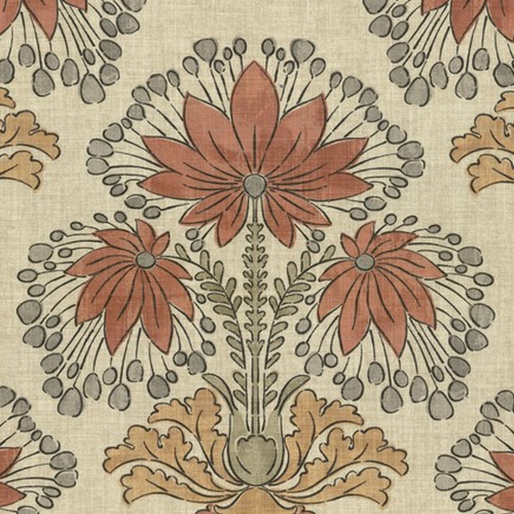 | his tonal cotton print showcases a bold, stylized floral motif reminiscent of traditional block printing—reimagined on a much larger scale for modern impact. Crafted for heavy-duty use, it’s a versatile choice for upholstery, cushions, and decorative accents. The subtle palette and artisanal texture lend warmth and character to both contemporary and heritage-inspired interiors. |