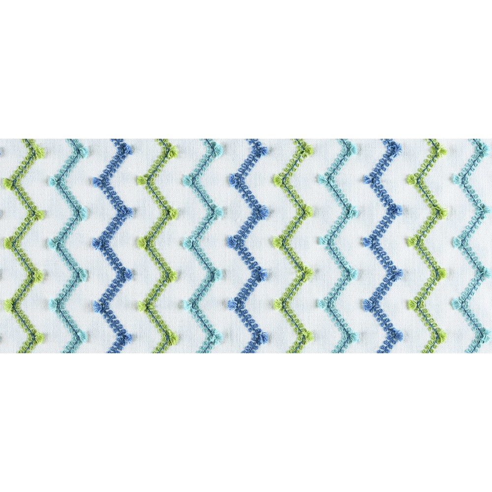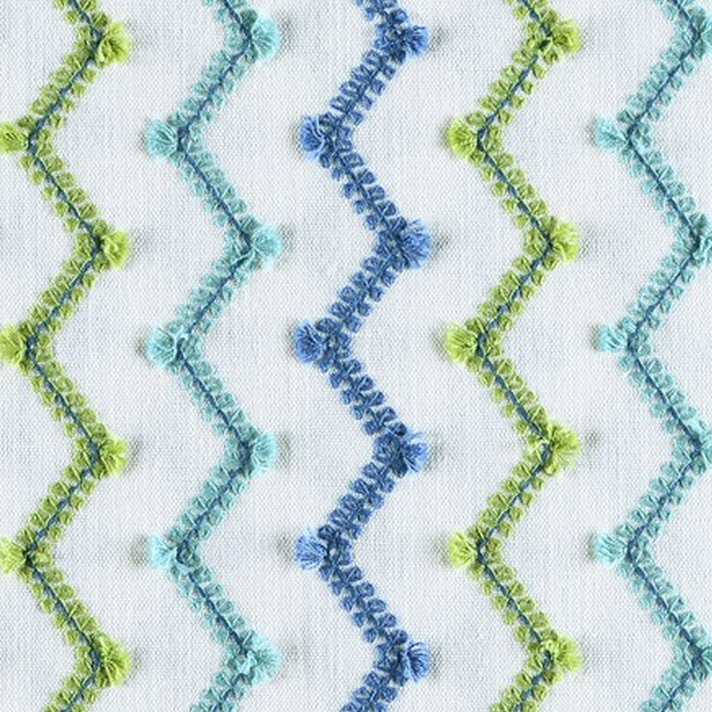 This decorative fabric features a playful embroidered zigzag accented with dotted tufting, echoing the nostalgic charm of classic rickrack trim. The dimensional stitching adds texture and whimsy, making it a delightful choice for accent pillows, drapery borders, or creative upholstery. A modern nod to vintage detailing with handcrafted appeal.