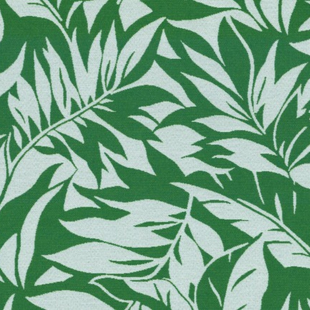 | Woven from a durable blend of 51% polypropylene and 49% polyester, this easy-clean fabric is solution dyed for lasting color and fade resistance. The botanical leaf print plays out in a yin-yang composition, using two tones to create a striking resist-style effect. Designed for indoor and outdoor use, it’s a bold yet balanced choice for cushions, upholstery, and décor that blends nature with graphic harmony. |