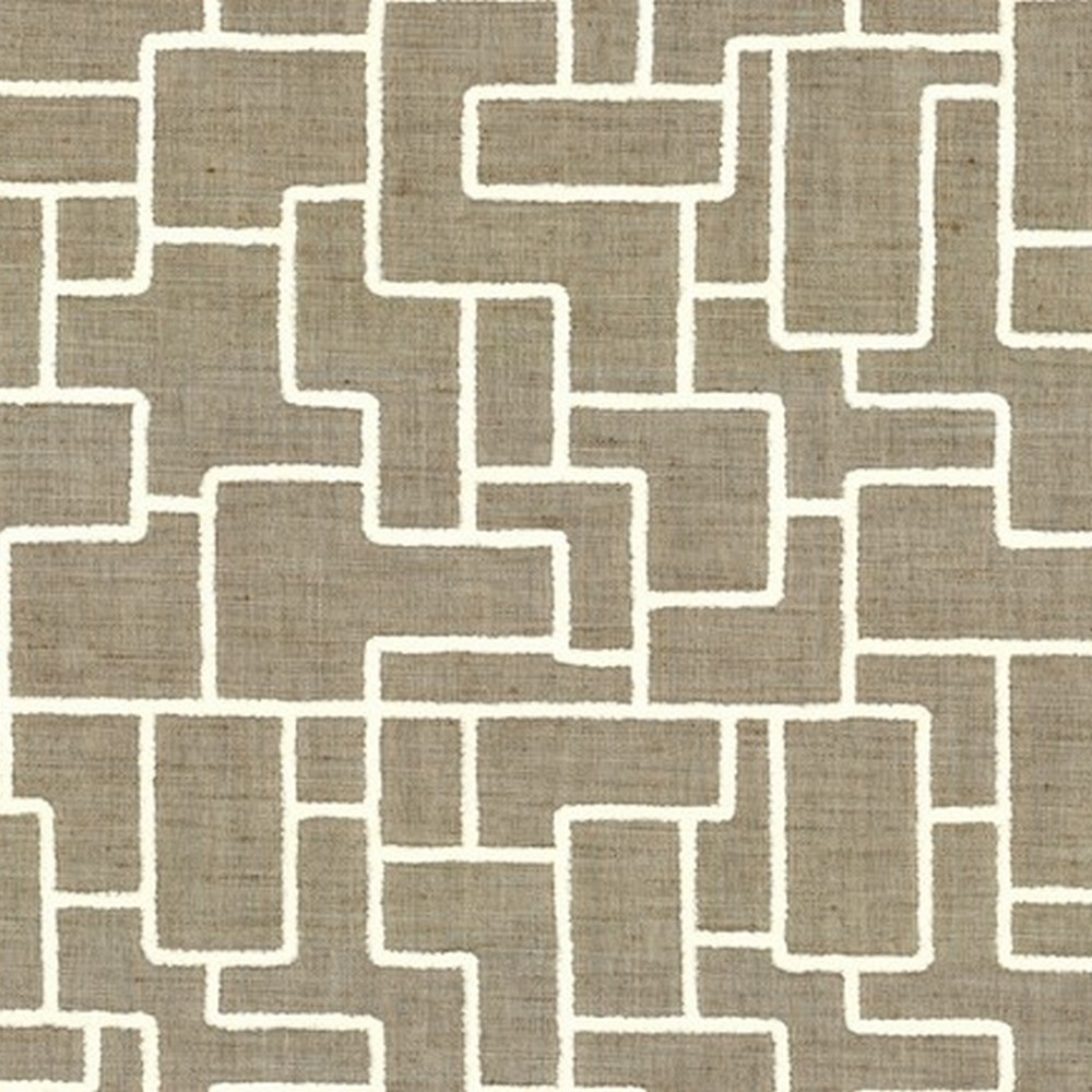 | Shapeshifter brings bold geometry to life with embroidered squares and rectangles that shift across a woven polyester ground. This heavy-duty fabric balances modern edge with durable performance, making it ideal for statement draperies, structured cushions, or architectural panels. The crisp embroidery adds dimensional texture, while the resilient base ensures lasting style in high-traffic spaces. |