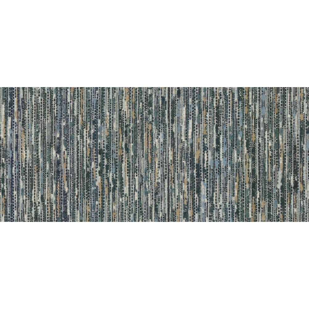 | Railroaded for upholstery, this backed polyester-linen blend features a richly textured stripe with a distinctive thick-and-thin construction. Knots of heavier threads punctuate the weave, creating a variegated stripe that feels artisanal and dimensional. The railroaded layout enhances its visual flow across wide surfaces, making it ideal for sofas, benches, and panels that call for tactile interest and tailored durability. |