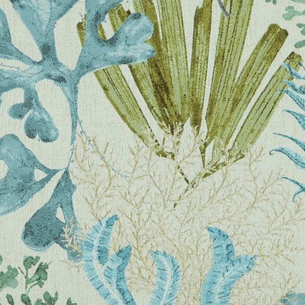 | Woven polyester backed fabric for medium-duty upholstery and multipurpose décor. Features painterly coral and underwater seaweed motifs in a watercolor style. Durable construction with artistic marine-inspired pattern. Ideal for cushions, benches, and coastal-themed interiors. Decorative fabric with oceanic flair and soft, fluid movement. Coordinates with beach house, nautical, and tropical palettes. |