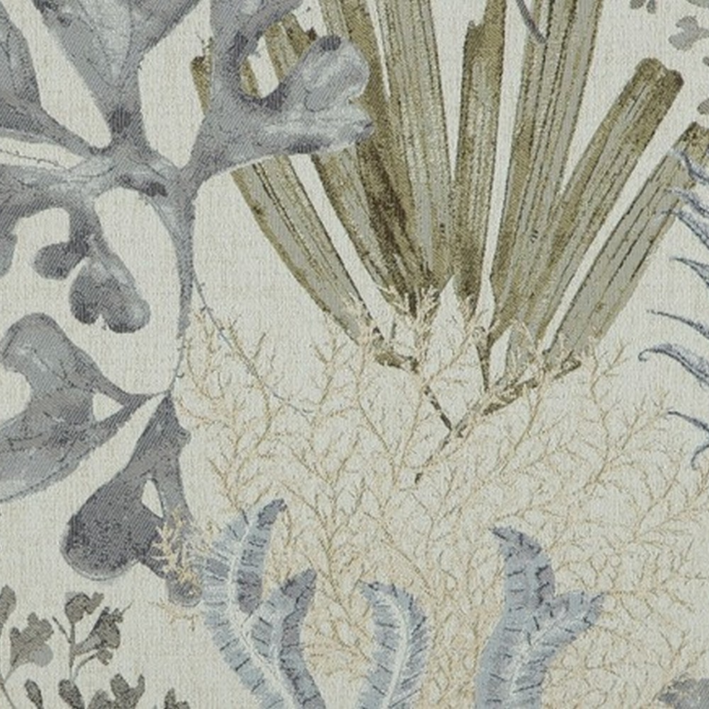 | Woven polyester backed fabric for medium-duty upholstery and multipurpose décor. Features painterly coral and underwater seaweed motifs in a watercolor style. Durable construction with artistic marine-inspired pattern. Ideal for cushions, benches, and coastal-themed interiors. Decorative fabric with oceanic flair and soft, fluid movement. Coordinates with beach house, nautical, and tropical palettes. |