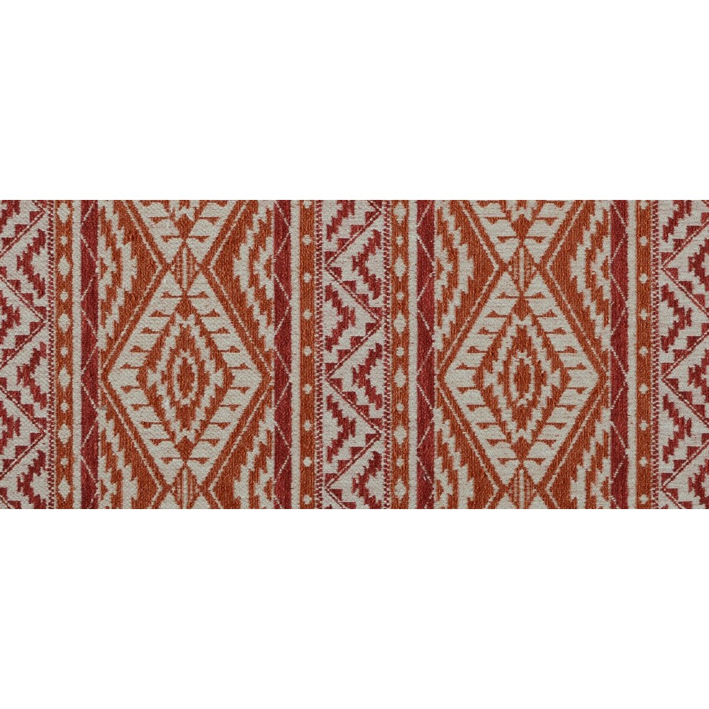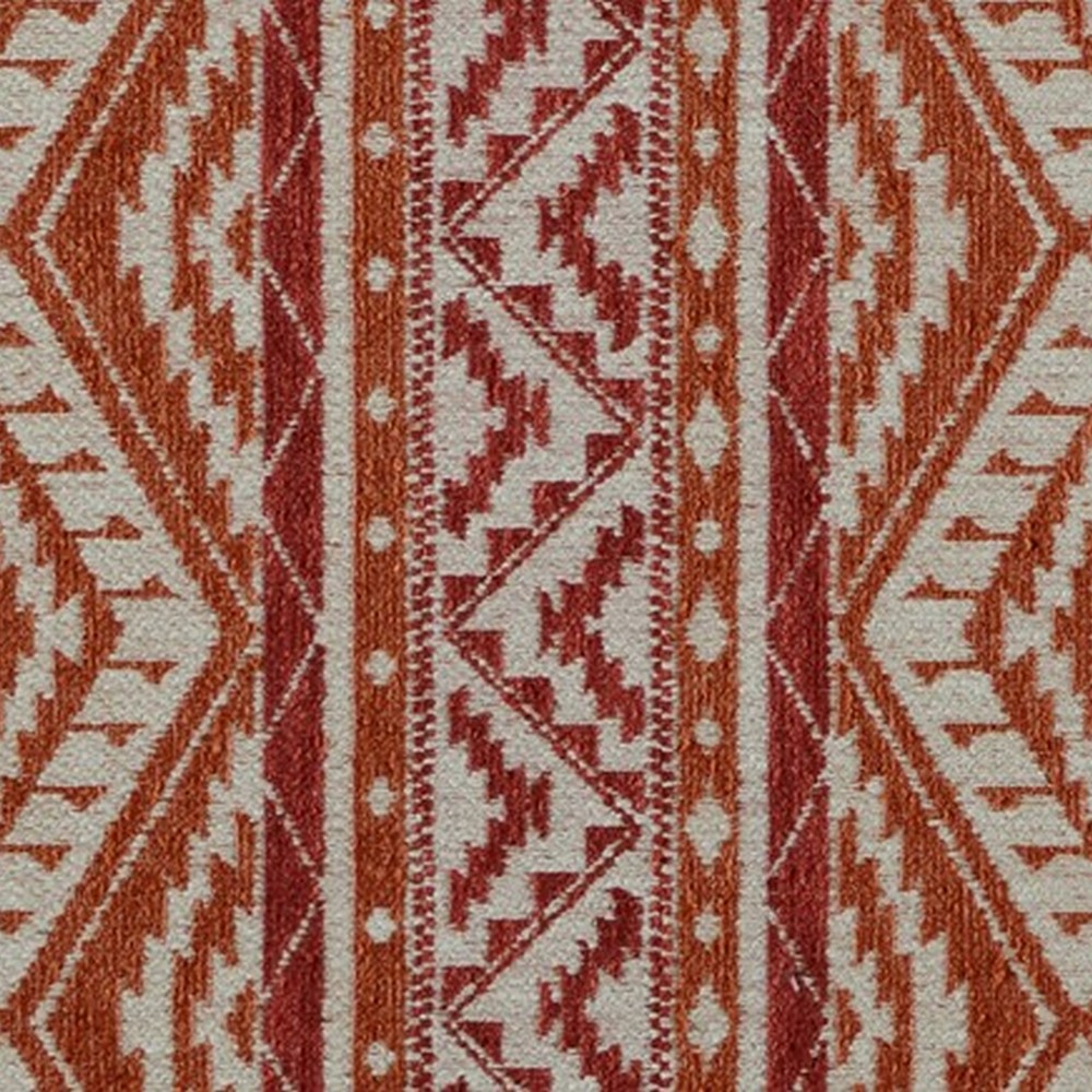 Railroaded woven polyester upholstery fabric with traditional kilim or ikat-inspired stripe and southwestern diamond motifs. Heavy-duty construction ideal for sofas, benches, and statement seating. Features bold ranch-style patterning in rich, gorgeous colors. Perfect for rustic, lodge, or desert-inspired interiors. Durable, decorative, and full of heritage charm.