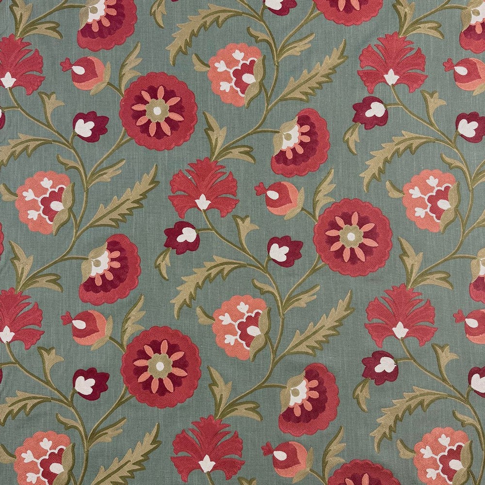 | Magfabrics Green,multi-color,red Crewels/embroideries Crewel,embroidery,floral Fabric Pattern is Uproll |