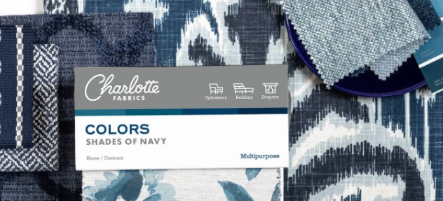 Charlotte Fabrics Shades Of Navy online by the yard at discount prices with Charlotte samples available. For assistance with any Charlotte Fabric, please call or email one of our knowledgeable and friendly customer service representatives.Multipurpose Residential and Commercial Fabrics