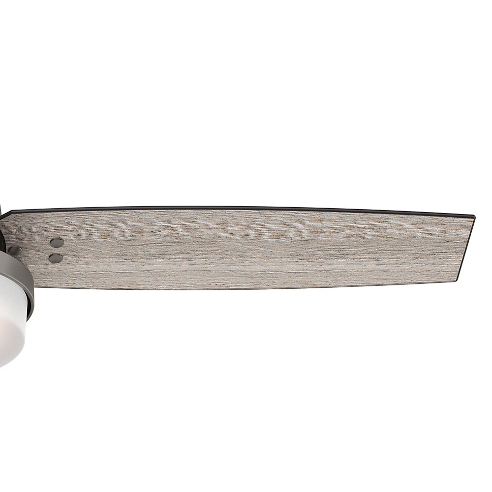 Classic and clean contemporary style ceiling fan includes LED bulbs and a handheld remote. 3 Light Grey Oak / Grey Walnut Reversible Composite blades included.