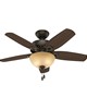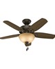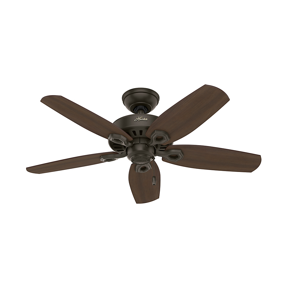| Hunter Release Date: May 2016 5 Brazilian Cherry / Harvest Mahogany Reversible blades included with this best-selling ceiling fan style. Bowl light kit in toffee glass is included but optional. WhisperWind® motor Standard, flush or angled mounting. Pull Chain Limited Lifetime Motor Warranty Reversible motor for winter/summer 13 degree blade pitch Airflow: 3659 CFM Electricity Use: 62 Watts Airflow Efficiency: 59 CFM/Watt |