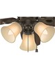 | Casual and traditional, this 42" ceiling fan has a flush mount for rooms with low ceilings. The optional light kit includes a three-light fitter with toffee glass globes and three 60W candelabra bulbs. 5 Brazilian Cherry / Harvest Mahogany Reversible Composite blades included. WhisperWind™ Motor Limited lifetime manufacturer warranty Reversible motor for summer/winter operation 13 degree blade pitch for optimal performance Airflow: 2481 cfm Electricity Use: 49 w Airflow Effiency: 51 cfm/w |