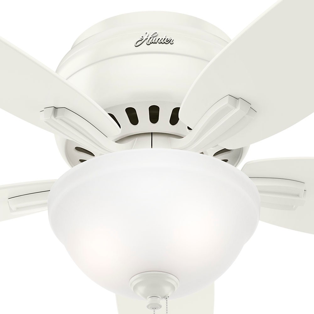 | Classic Collection Casual and sleek fan for standard to large rooms. 5 Fresh White / Light Oak Reversible Composite Blades included Bowl light kit with clear frosted glass uses two 13W Standard Medium Base CFL bulbs (included). Light kit installation is optional and cap is included. Pull Chain Operation Low profile housing is specially designed to fit flush to the ceiling and is ideal for rooms with low ceilings Limited Lifetime Motor Warranty Reversible motor allows you to change the direction of your fan for the seasons 13 degree blade pitch optimized to ensure ideal air movement and peak performance Overall Height: 14.23 Airflow: 3222 CFM Electricy Use: 62 WATTS Airflow Efficiency: 52 CFM/WATT |