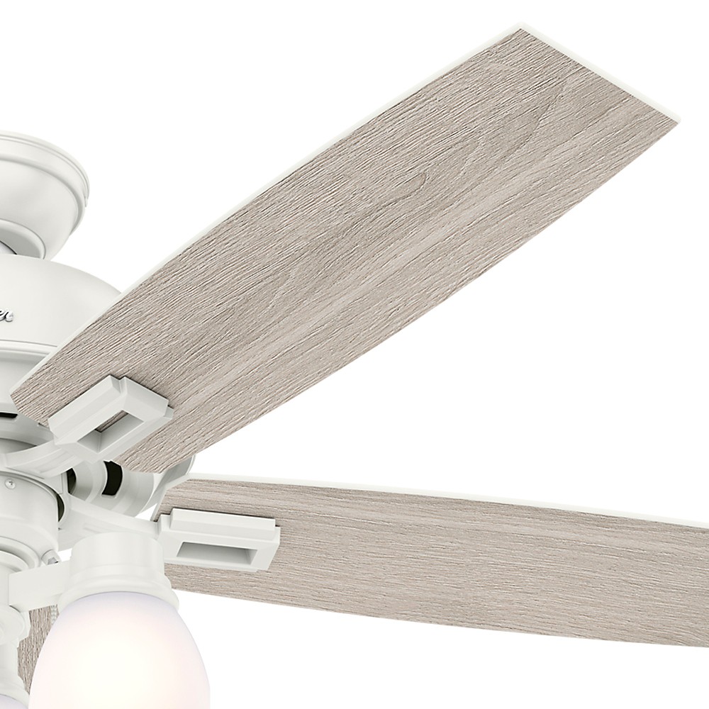 | Designer Collection Three-Light Fan New July 2016 5 Fresh White / Light Grey Oak Reversible Composite blades included Rustic Features give it a subtle western flair. Large Room Fan The three light kit with clear frosted glass uses three 9.8W LED bulbs which are included. Light kit installation is optional. Pull Chain Operation Mounting system installs at 3 positions: standard, flush and angled with 3" and 2" downrods included for proper distance from the ceiling for optimum airflow Limited Lifetime Motor Warranty Reversible motor allows you to change the direction of your fan for the seasons 13 degree blade pitch optimized to ensure ideal air movement and peak performance Overall Height: 18.62 Airflow: 4930 CFM Electricy Use: 62 WATTS Airflow Efficiency: 79 CFM/WATT |
